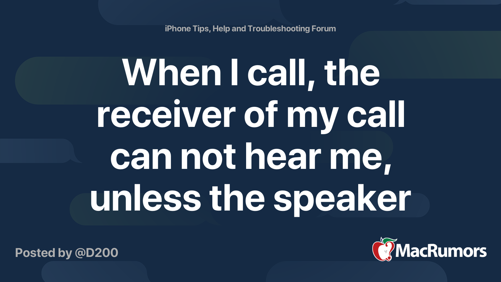 When I Call The Receiver Of My Call Can Not Hear Me Unless The Speaker Is On Macrumors Forums